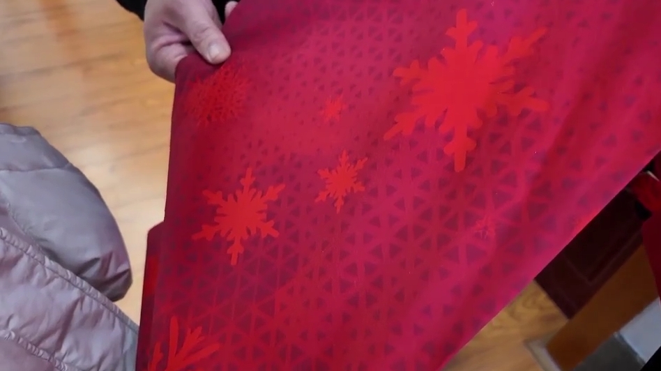 “我们属于面料出产商,这件颁仪式礼节服拆设想以‘瑞雪报捷’为从题,设想构想以冰雪文化元素取国旗红色调为从,雪花取旗号相映成画。